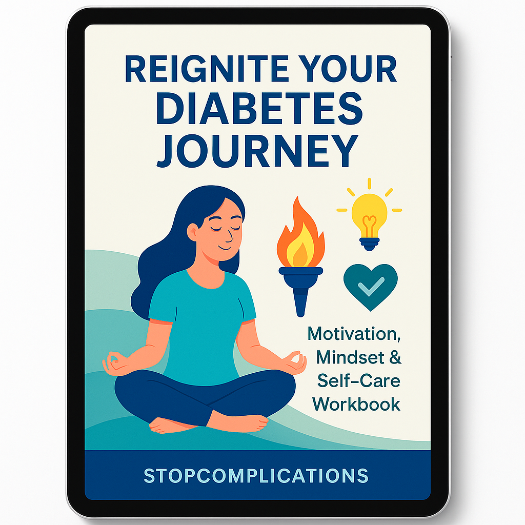 “Reignite Your Diabetes Journey” is a printable and digital workbook created to guide people living with diabetes toward sustainable motivation and emotional balance.